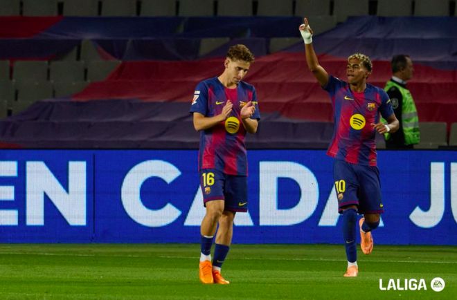 第9分钟,在巴萨的施压之下,埃尔切传球失误被抢断,巴尔德的传球恰到好处,亚马尔轻松破门,打破僵局。